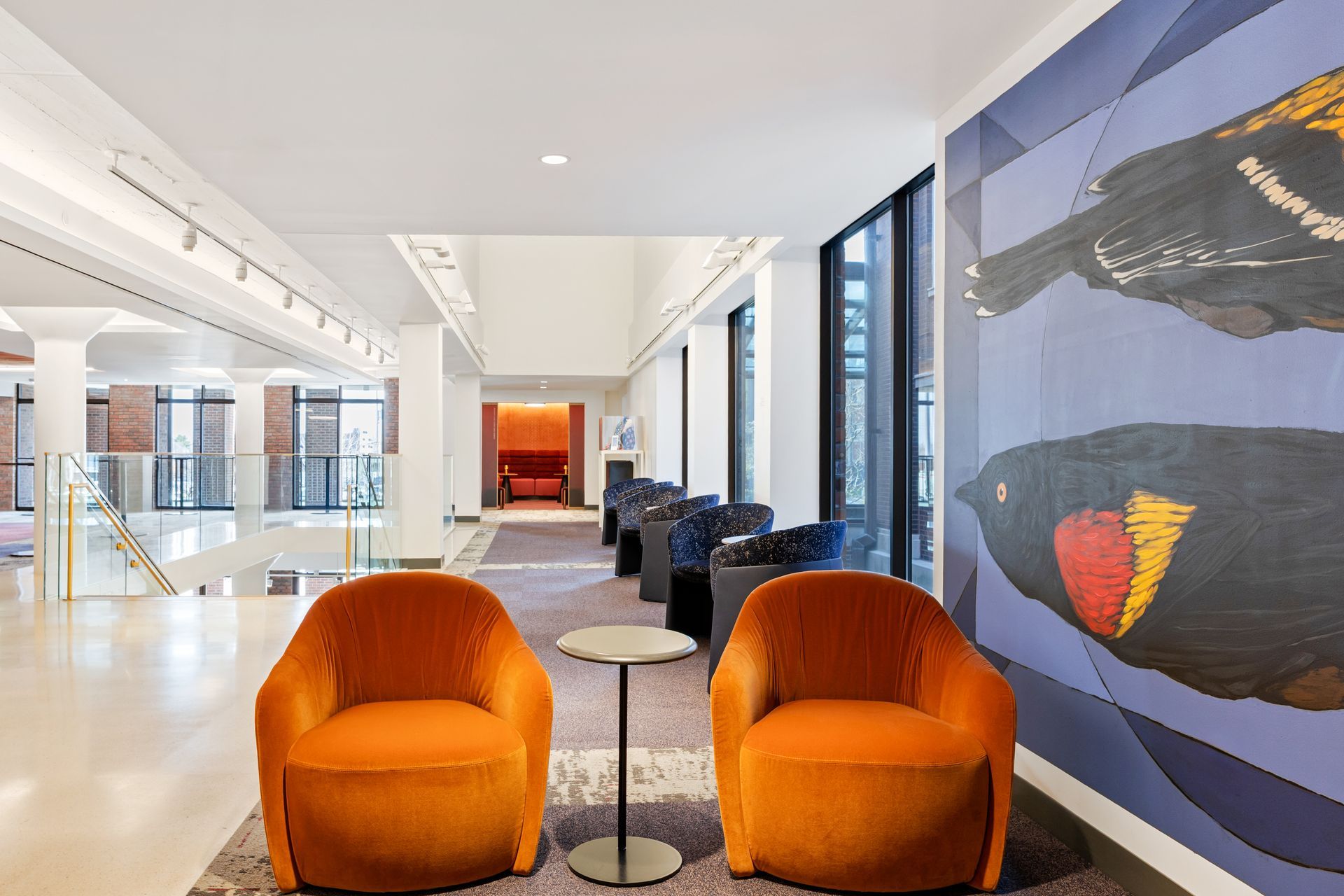 Facilitec furnished lounge areas, in-between spaces, and the members bar at The Sheldon Concert Hall. Designed for comfort, durability, and flow, each space supports both social gathering and quiet moments. A cohesive approach creates an elevated, welcoming experience throughout.